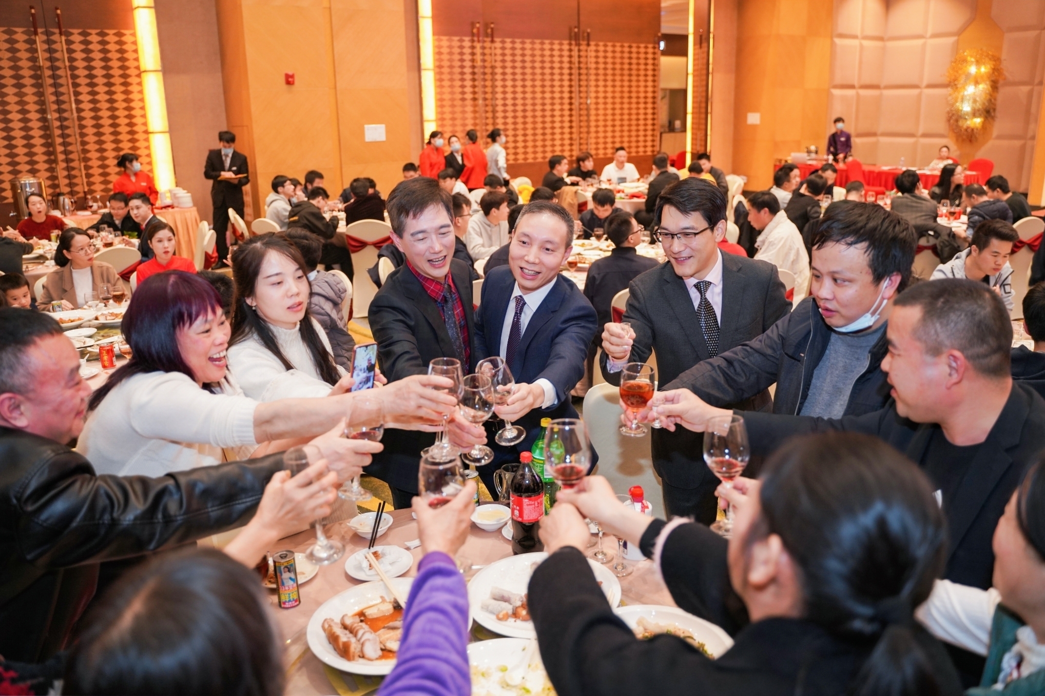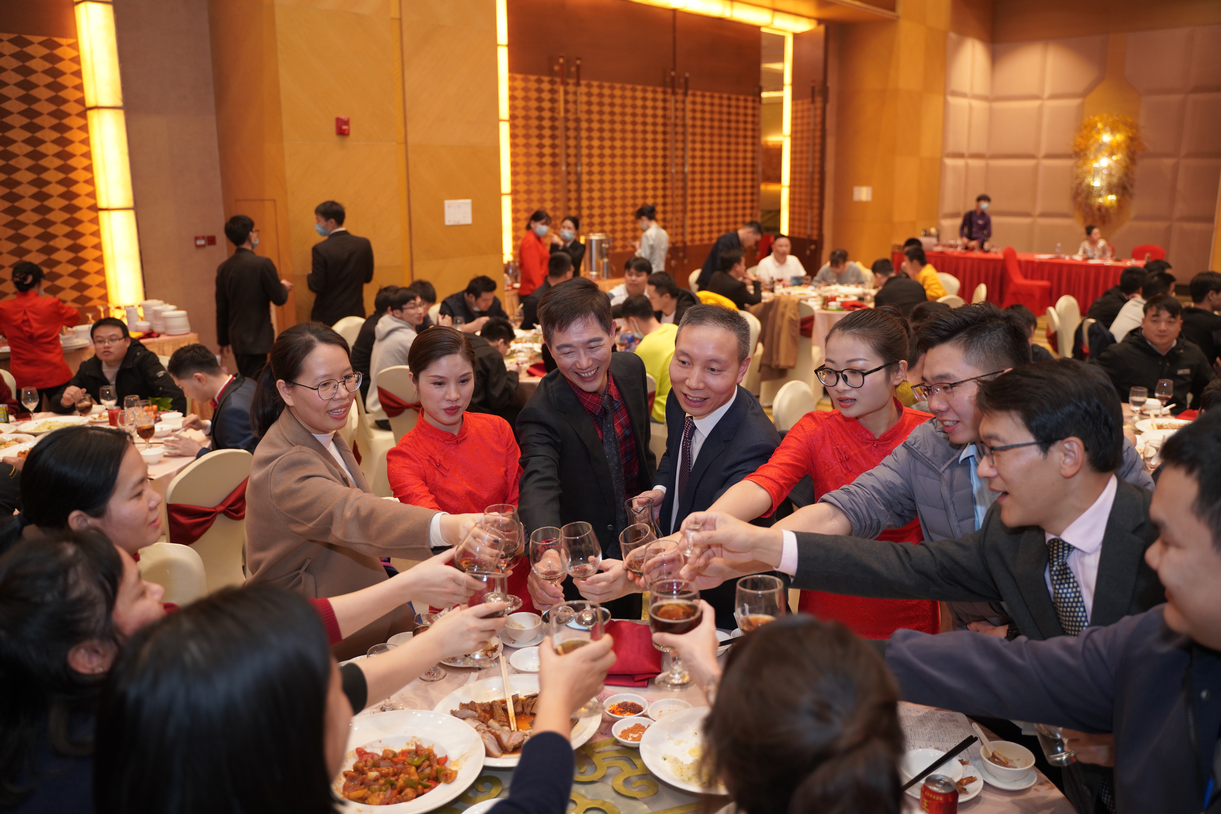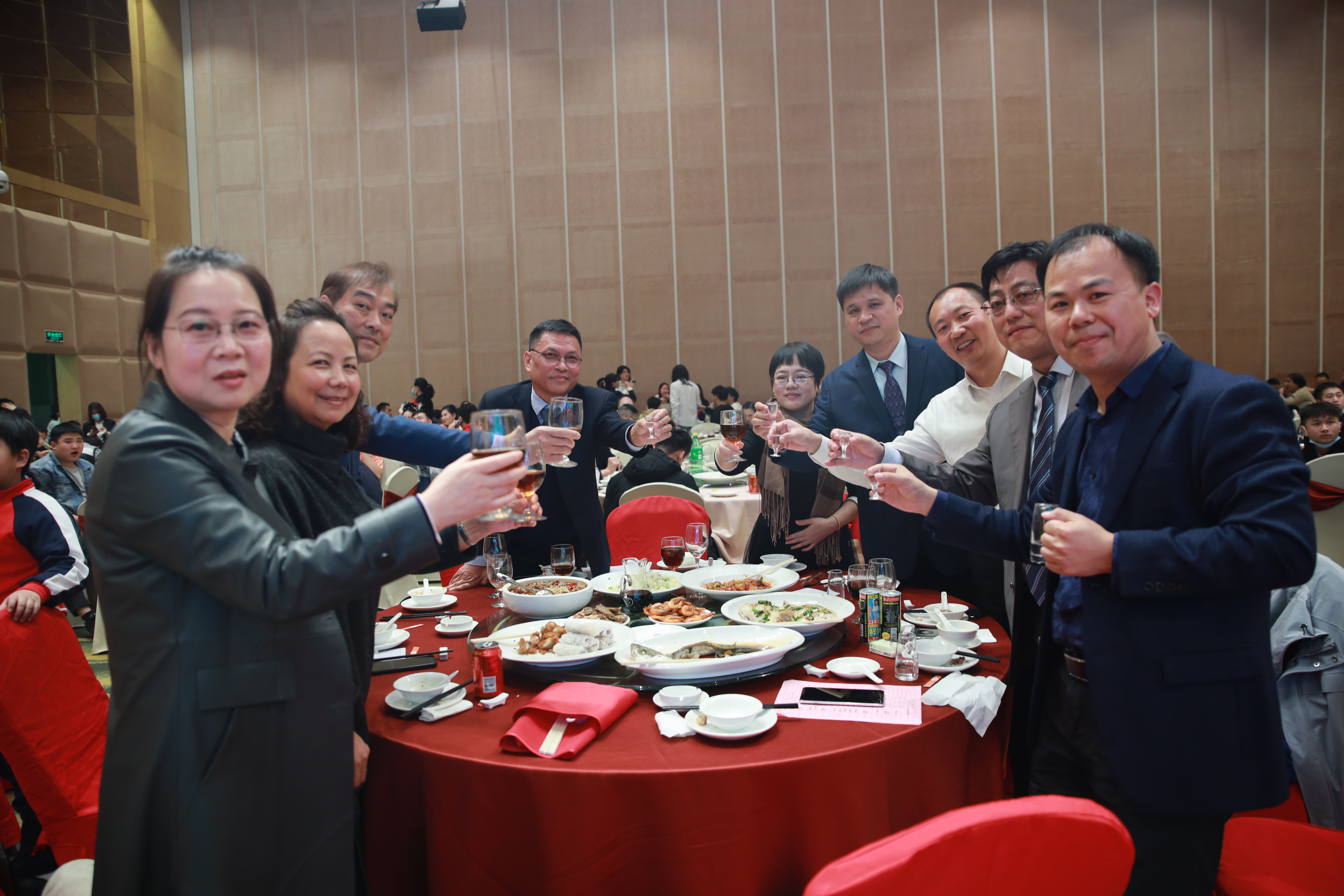 15vip太阳成科技的兄弟姐妹们开怀畅饮、品尝美食,现场气氛热闹,人人喜气洋洋。