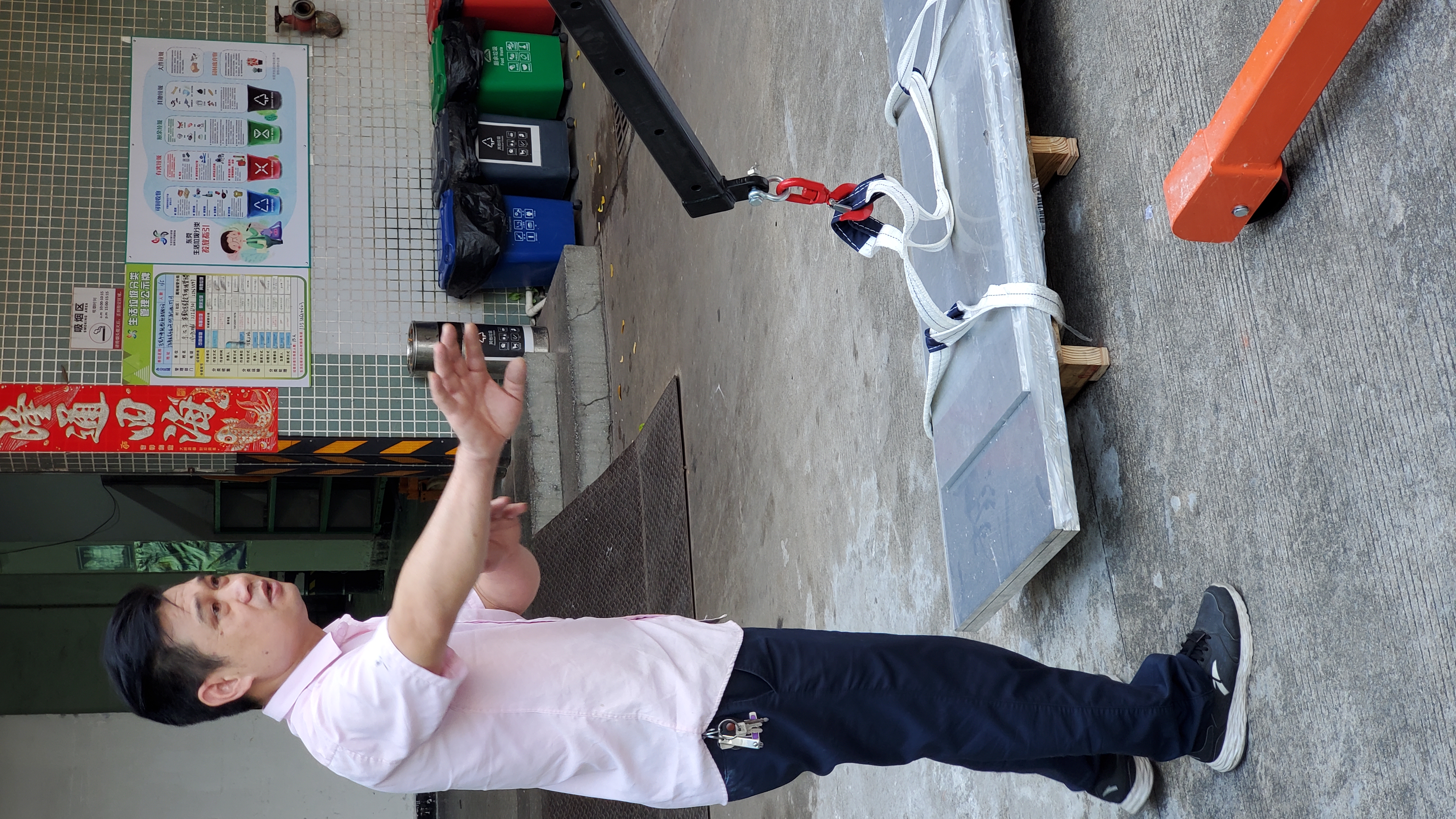 在培训开始前,刘师傅提前准备好了几块钢板,并使用绑绳和挂钩将钢板固定,保证后续的吊机操作在安全中进行。